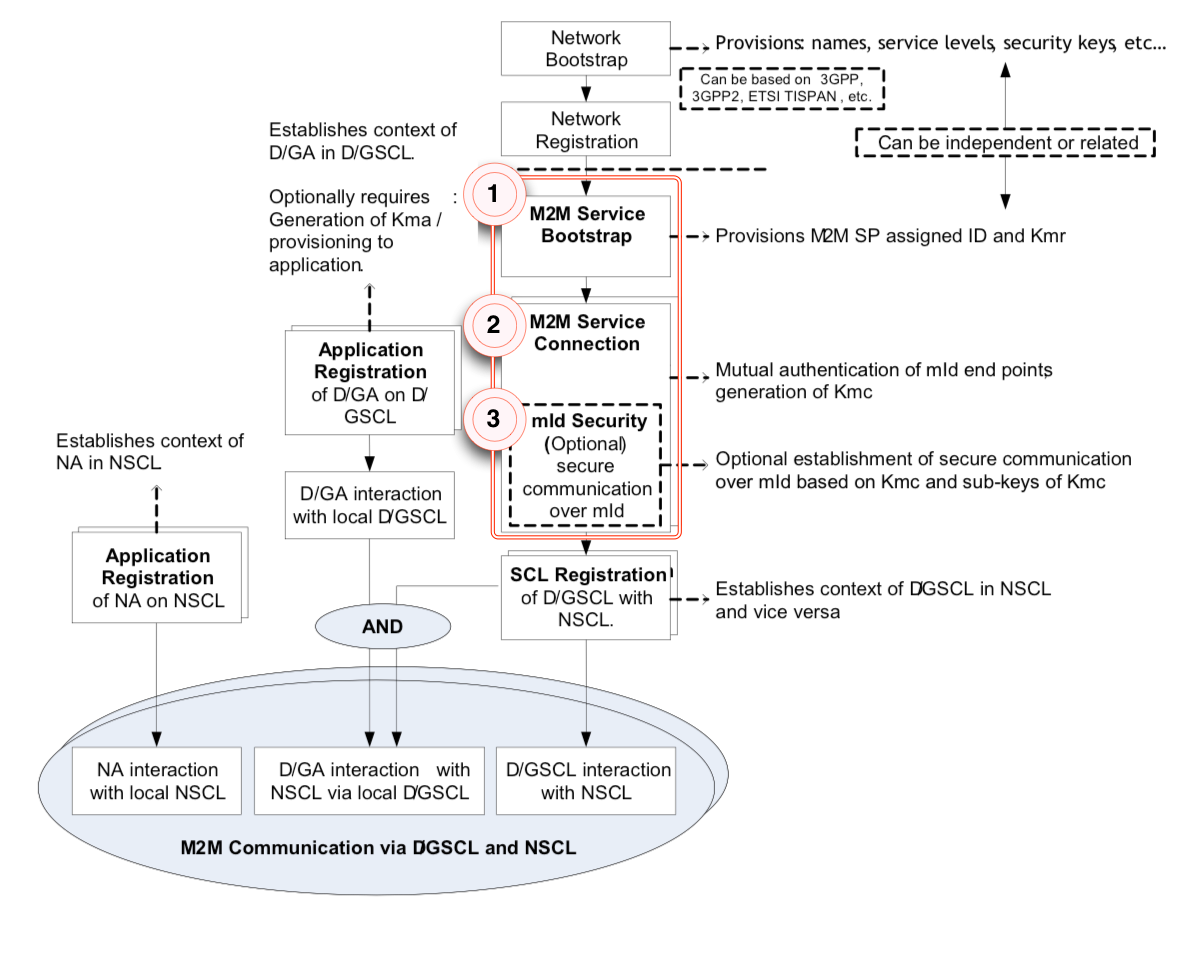 1. M2M Service Bootstrap:  provision M2M service provider assigned ID & M2M Root Key (Kmr)